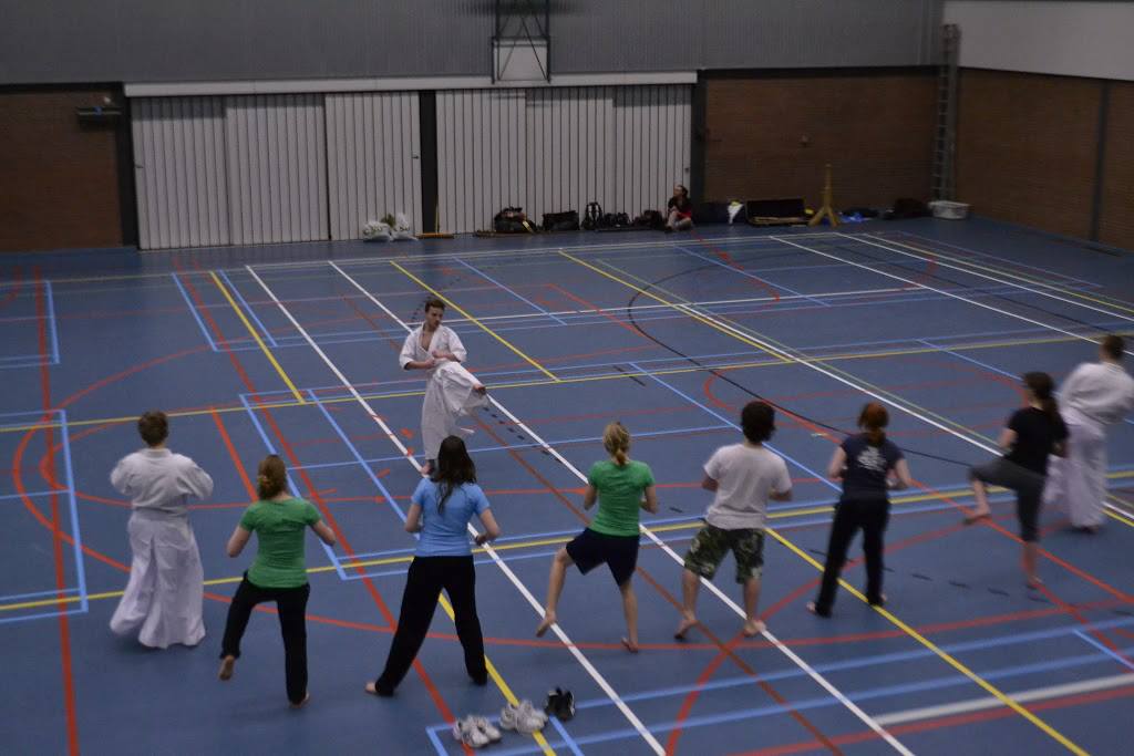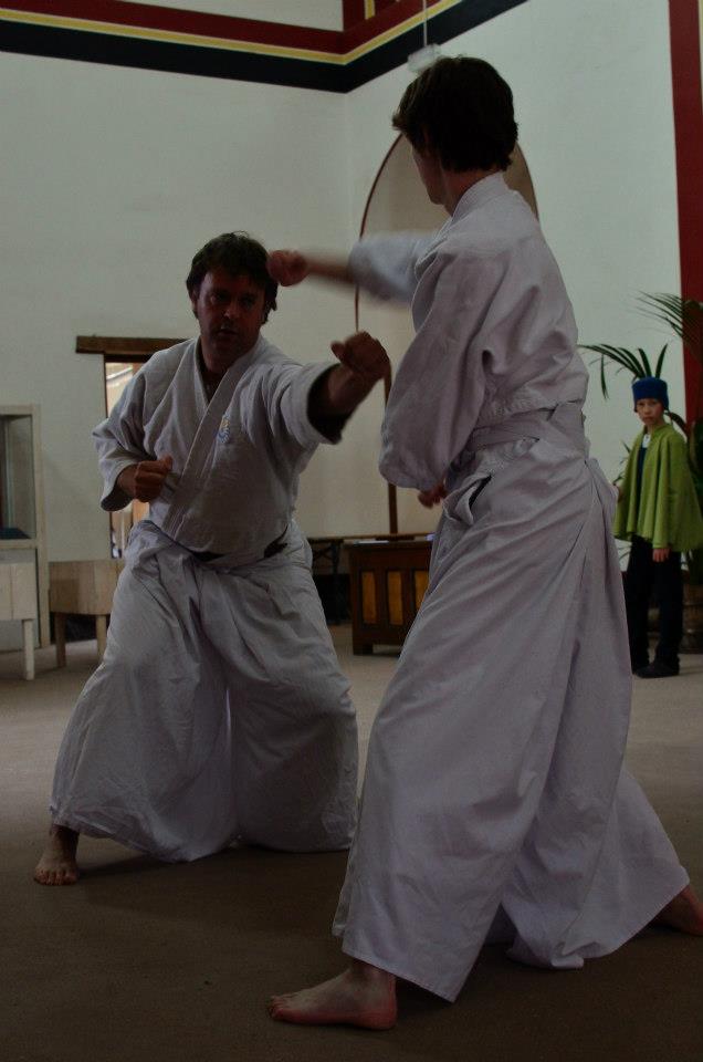 - Ward-Sensei laat met Timo-san een stoot- en bloktechniek zien
