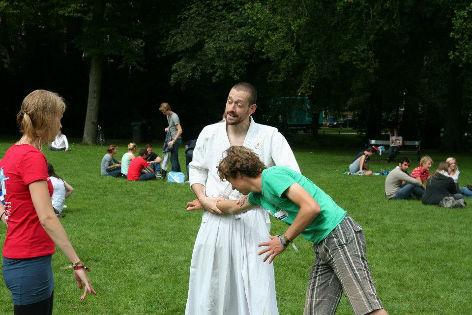- Bjorn-san doet het even voor, bij een oefening in Takeda Aikido