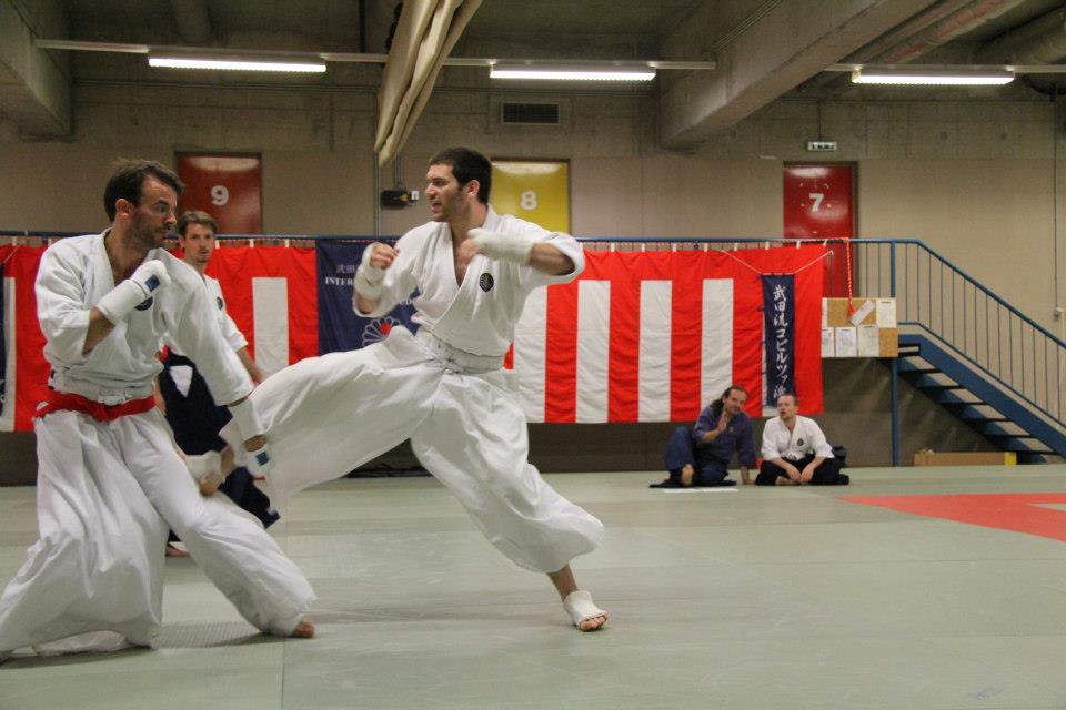 - Training van Tsuki, Uchi en Geri Waza (stoot-, slag- en traptechnieken) in Takeda Jukempo