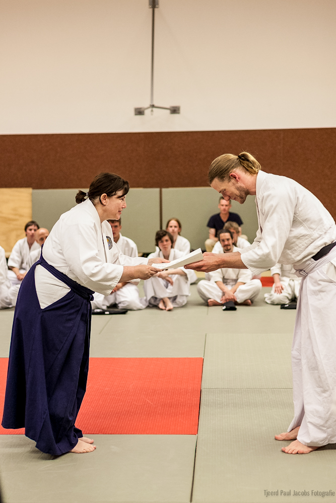 - Wouter-san ontvangt zijn certificaten voor Shodan Jukempo en Shodan Kendo.