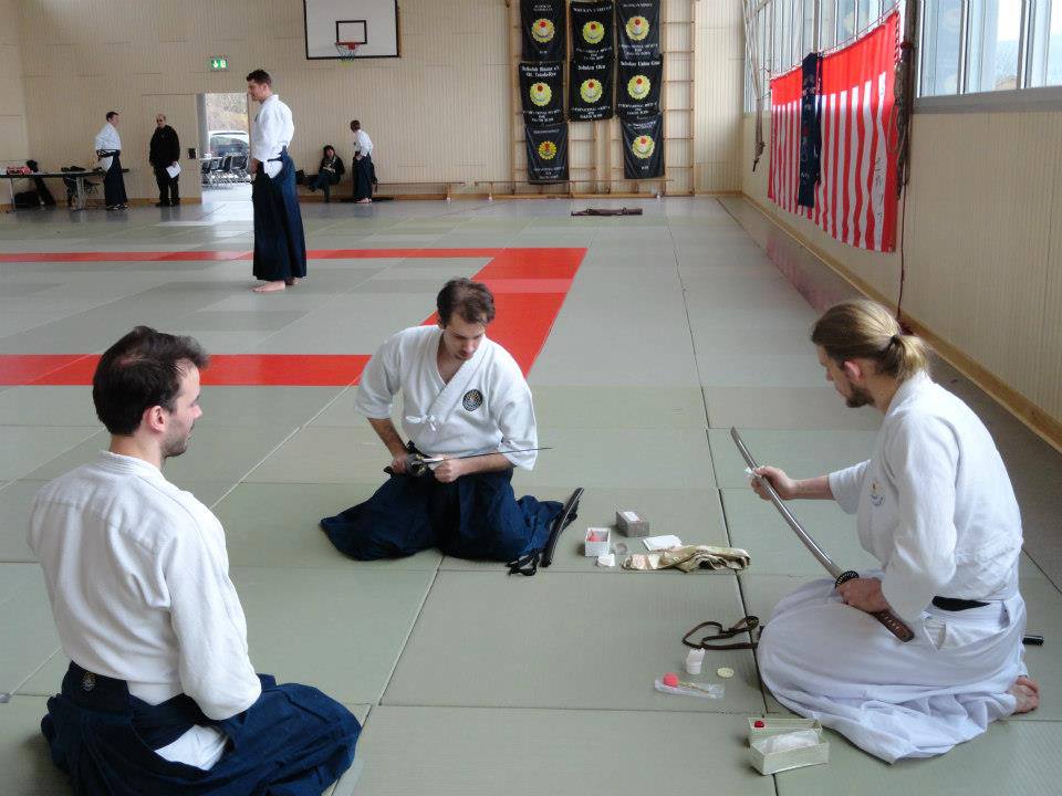 - Het schoonmaken van de Shinken (geslepen zwaard) en de Iaito (ongeslepen oefenzwaard)